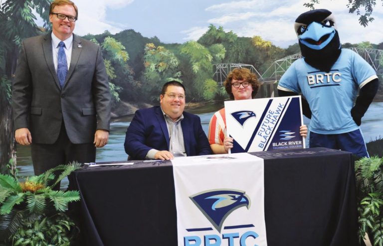 Zachary Gunnels, a senior at Mammoth Spring High School, signed a letter of intent, committing to attend Black River Technical College in the Fall of 2022. Zachary plans to seek a degree in Nursing. The 2022 Signing Day took place on Saturday, May 7 in the Lobby of the Administration Building on the Pocahontas campus. Zachary was accompanied by his parent, Nicole Buls. BRTC would like to recognize and celebrate Zachary’s decision to attend college and congratulate him on his high school graduation.
